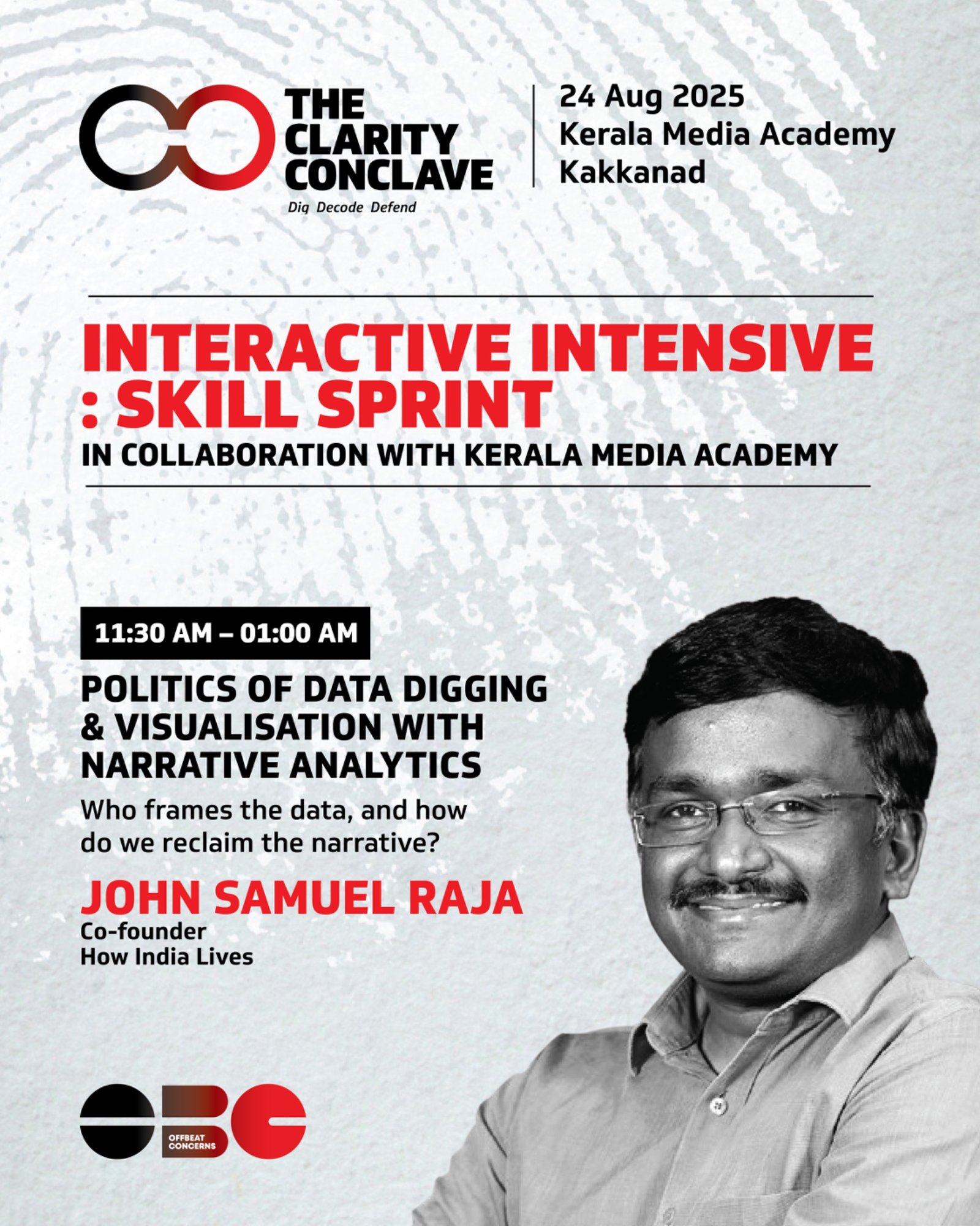 His sessions are designed to show how credible, evidence-based stories can empower local voices. Core topics include sourcing public data from government portals, applying spreadsheet tools like Excel for analysis, creating visual narratives with platforms such as Tableau or Google Data Studio, and understanding the ethics of data handling to avoid bias. Raja illustrates these concepts through How India Lives projects, such as the Smart Cities Tracker, which highlights patterns in infrastructure and economic development.